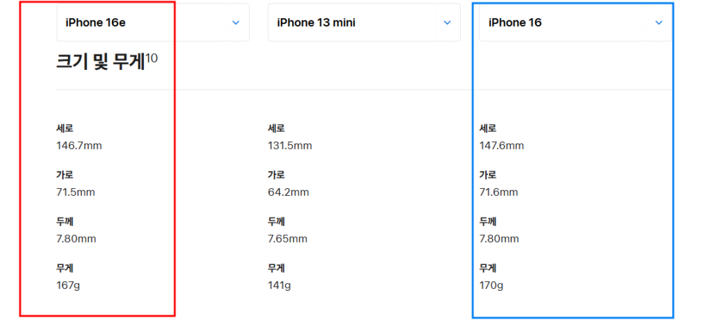 | 구분 | 아이폰 13 미니 | 아이폰 16E |